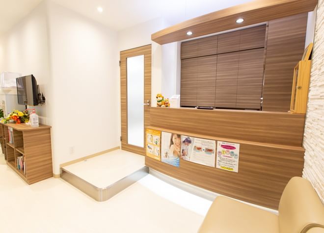 当院の受付です。スタッフが笑顔でお出迎えします。わからないことがあれば、お気軽におたずねください。