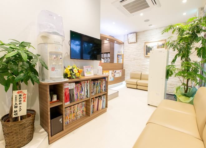 待合室です。お名前を呼ぶまでこちらでお待ちください。雑誌などはご自由にご覧ください。