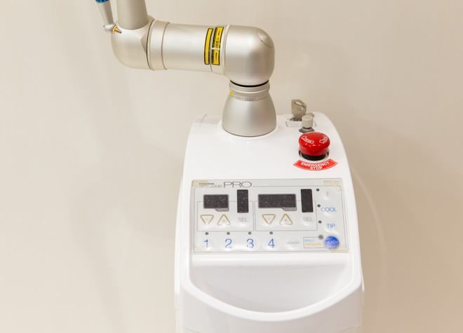 レーザー治療器です。止血・殺菌・消毒などの効果を持つ特殊な光を照射する治療器です。むし歯や歯周病の治療、ホワイトニング、外科的処置などに適用します。